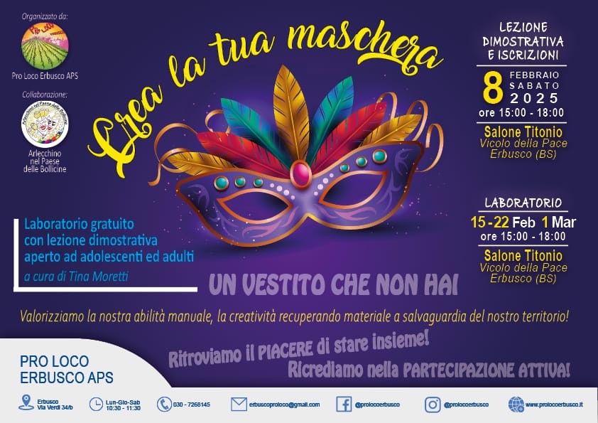 Progetto realizzato nell’ambito del bando Programma di sviluppo rurale 2014-2020 di Regione Lombardia dalla Proloco Erbusco in collaborazione con il Comune di Erbusco. Domanda numero 202102150905 del 2 marzo 2022.