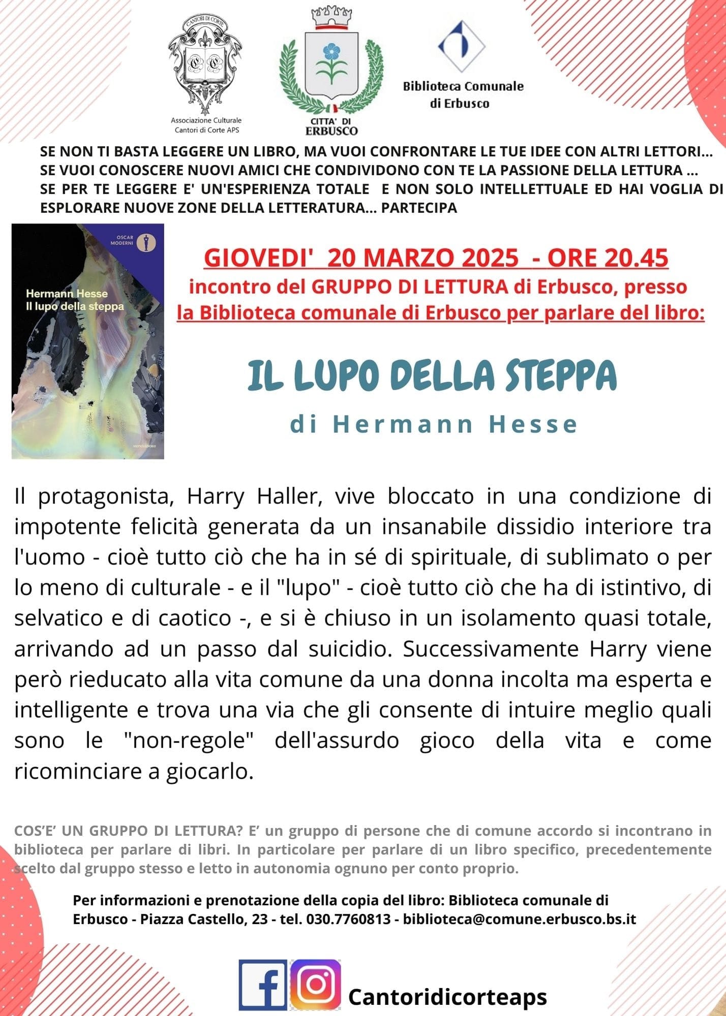 Incontro del gruppo di Lettura di Erbusco, presso la biblioteca comunale di Erbusco per parlare del libro di Hermann Esse