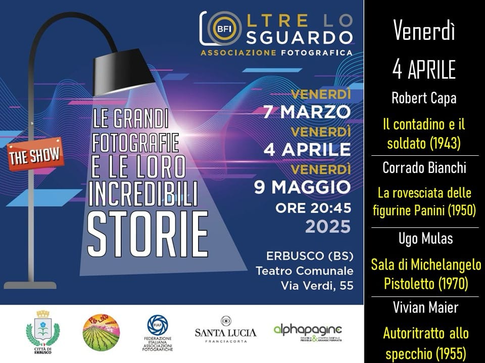 L’Associazione Fotografica “Oltre lo Sguardo” organizza un racconto, suddiviso in tre tappe, che svelerà le storie delle grandi fotografie. In allegat
