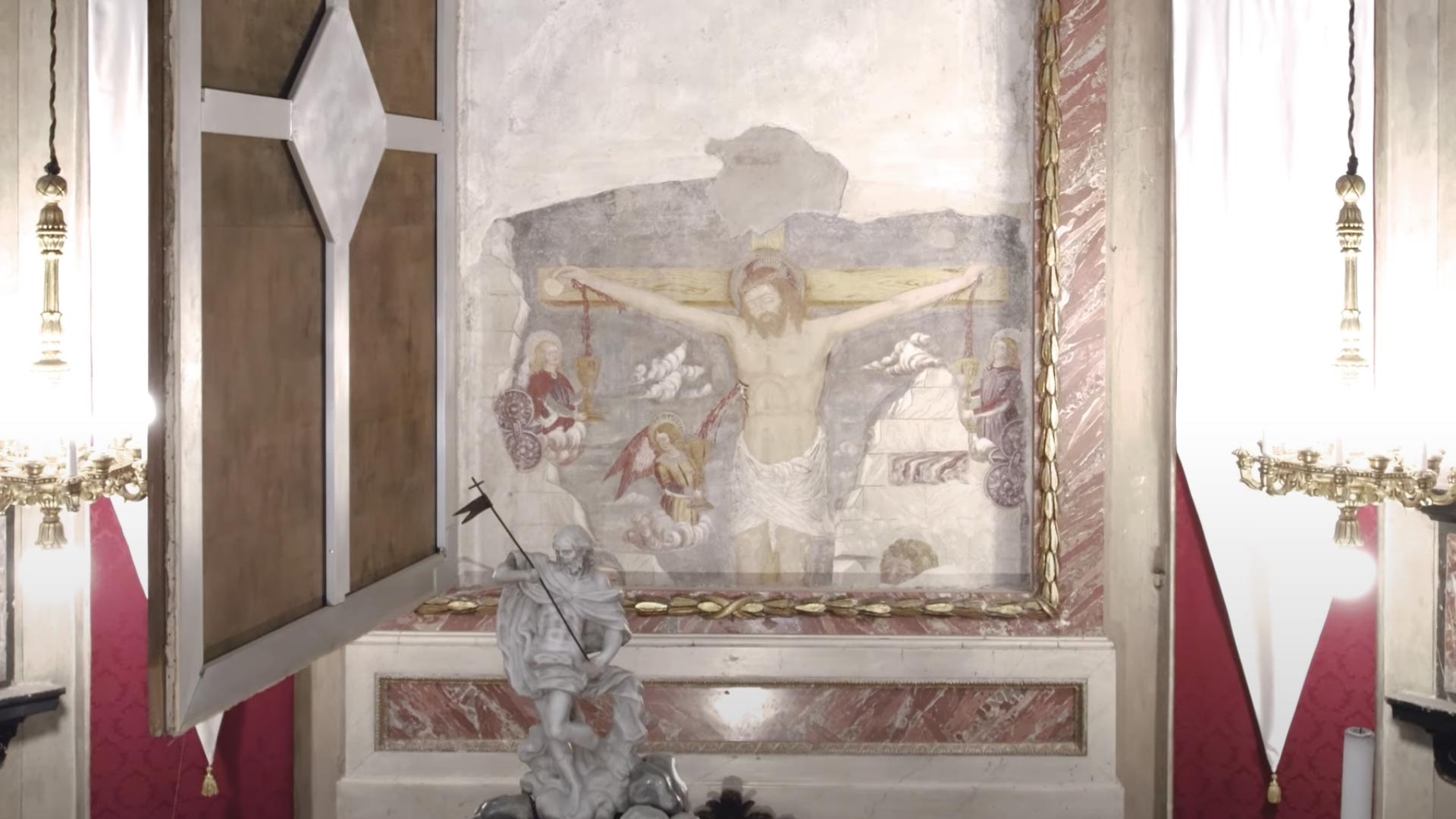 Affresco trecentesco con Crocifissione scoperto dietro la tela dell'altare. Storico organo ottocentesco restaurato recentemente.